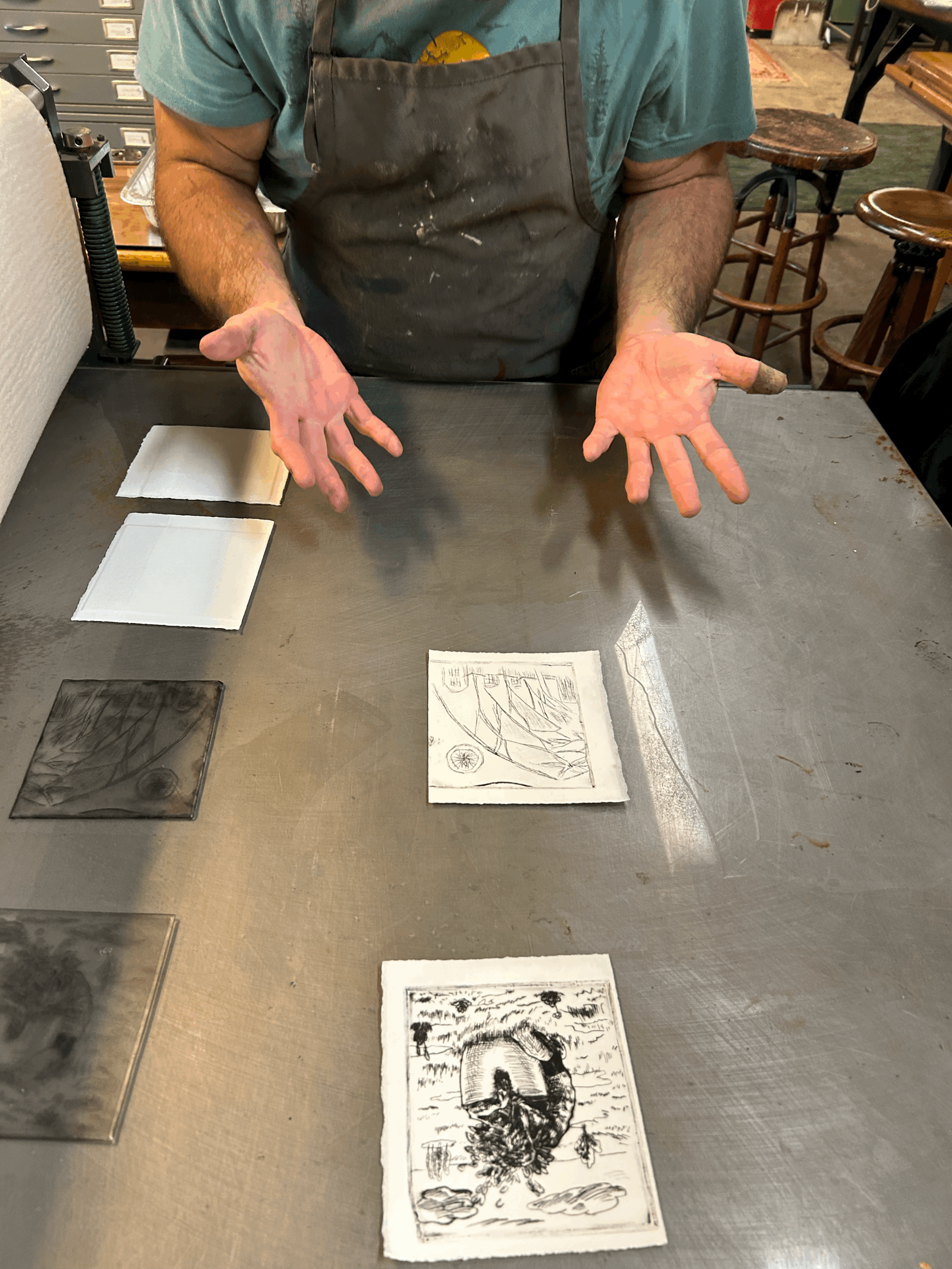 Evening 2 : intro to intaglio printing- plate inking, wiping, paper handling, working the press